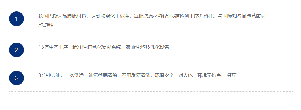 应用范围:适合工厂、机修、汽修、停车场、厨房及餐厅等油污严重场所的除油清洁工作。