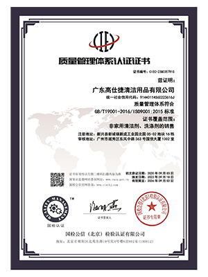 高仕捷-质量管理体系认证证书